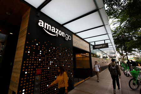 〔写真説明〕米アマゾン・ドット・コムのレジなしコンビニ「アマゾン・ゴー」の店舗=2025年6月、ワシントン州シアトル(EPA時事)