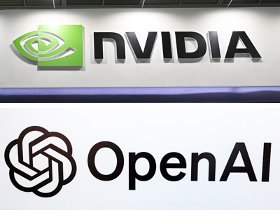 〔写真説明〕米エヌビディア(写真上)とオープンAIのロゴマーク(いずれもAFP時事)