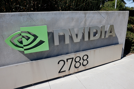 〔写真説明〕米半導体大手エヌビディアの看板(EPA時事)