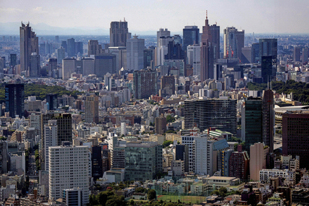 〔写真説明〕東京都心部の高層ビル群(資料写真、AFP時事)