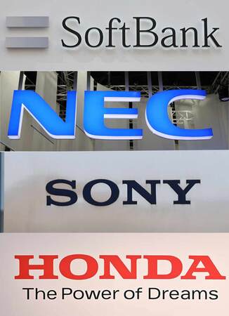 〔写真説明〕写真上からソフトバンク、NEC、ソニーグループ、ホンダのロゴ