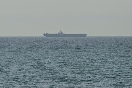 〔写真説明〕アラブ首長国連邦(UAE)ラスアルハイマ沖を航行する船舶=13日(AFP時事)