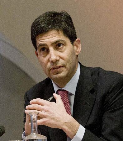 〔写真説明〕米連邦準備制度理事会(FRB)のウォーシュ元理事=2014年12月、ロンドン(EPA時事)