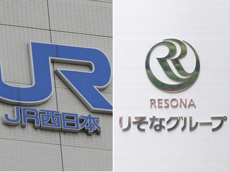 〔写真説明〕JR西日本(写真左)とりそなグループのロゴ