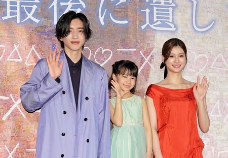 公開中の映画「君が最後に遺した歌」(三木孝浩監督)の舞台あいさつが東京都内で行われ、キャストの道枝駿佑(なにわ男子)、生見愛瑠、子役の英茉が出席した。
