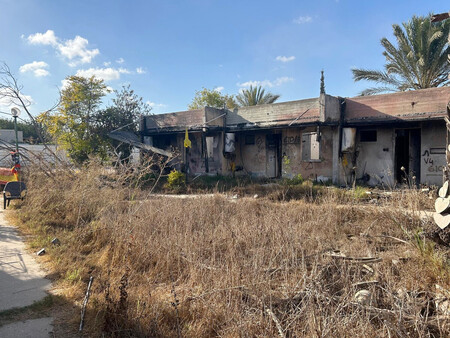 〔写真説明〕イスラム組織ハマスが2023年10月に襲撃したキブツ(集団農場)のクファルアザ=9月30日、イスラエル南部