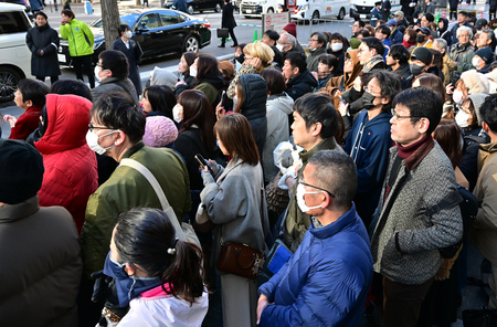 〔写真説明〕大阪市長選が告示され、街頭演説を聴く人々=1月25日、大阪市中央区