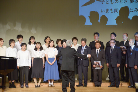〔写真説明〕チャリティーコンサートで合唱する横田めぐみさんの同級生ら=4日午後、新潟市