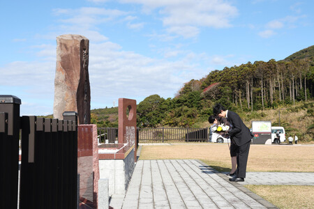 秋篠宮妃紀子さまと長男悠仁さまは22日、デフリンピック東京大会の競技観戦などのため、船で伊豆大島(東京都大島町)に入られた。到着後、2013年10月の台風26号による土砂災害犠牲者の慰霊碑を訪れ、供花した。