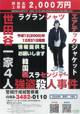 捜査本部にはこれまでに約1万4780件の情報が寄せられた。解決につながる情報には最大2000万円の懸賞金が支払われる。情報は捜査本部03(3482)0110まで。