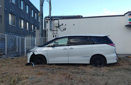 〔写真説明〕コンビニ駐車場で少年をはねた車=6日午後、大阪府東大阪市