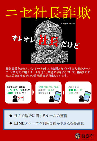 同庁は「社内でネット送金やSNSによる業務指示のルールを再確認し、不審な命令は社長本人に確認を」と呼び掛けている。