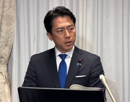 〔写真説明〕記者会見する小泉進次郎防衛相=1月23日、国会内