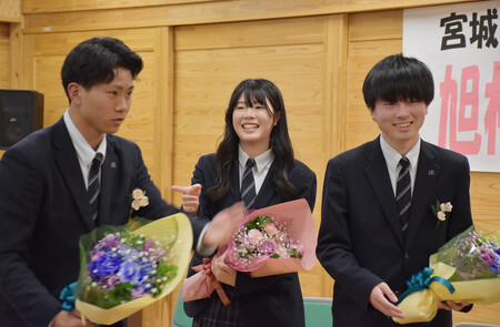 東京都出身の有川颯さんは、防災について学びたいと考え入学。「たくさんの方に支えていただいた。東京よりも南三陸が地元だと感じている」と話した。神奈川県出身の小畑孝太朗さんは、震災や被災地に関心があり、同校を選んだ。「さまざまな人と関わりながら震災について学び、観光事業の現状についても肌で実感した」といい、大学で観光を専門的に学ぶ予定だ。