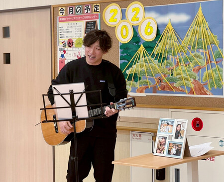 昨年11月、自宅近くの子ども食堂でボランティアに参加。今年に入り、県内の高齢者施設などでギターの弾き語りを披露する活動も始めた。「笑顔で手拍子をしながら聴いてくれる。逆に元気をもらっている」と語る。