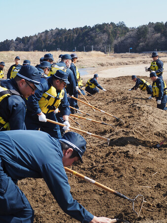 今も31人が不明の福島県浪江町では、双葉署員や消防、福島海上保安部職員ら約70人がスコップなどを手に、多くの犠牲者が出た河川敷を捜索した。その後、漁港に移動して整列し、発生時刻に合わせて黙とう。同署では年に数回、大規模な捜索を続けており、吉田浩道署長は「何か一つでも家族の元に返せるものを見つけたい」と決意を語った。