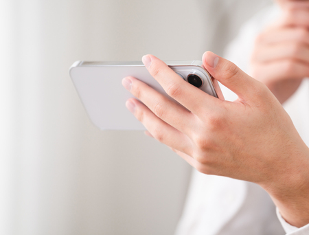 〔写真説明〕スマートフォンを見る人(写真はイメージ)