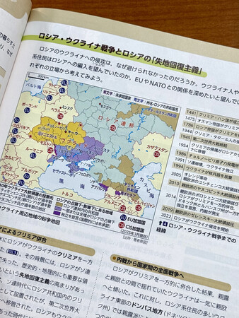 ウクライナ侵攻を巡っては、山川出版社の「地理探究」に、4件の検定意見が付いた。ロシアの「失地回復主義」をテーマにした記述に、ウクライナ側の背景事情の解説が少なく、生徒が双方の立場を理解できるような配慮がされていないなどの趣旨で、修正を経て合格した。