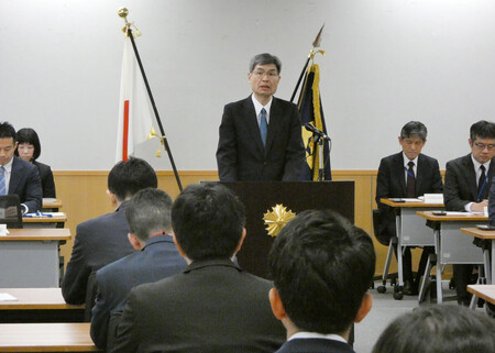 〔写真説明〕陸上自衛官による中国大使館敷地侵入事件を受けた臨時の警備担当者会議で訓示する、警察庁の楠芳伸長官=30日、同庁