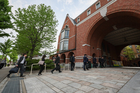 〔写真説明〕辺野古沖転覆事故を受けて、学校法人同志社に対する聞き取り調査に向かう文部科学省の職員ら=24日午後、京都市上京区