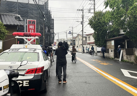 〔写真説明〕男がハンマーで高校生を殴り、警察官に液体を噴射した事件の現場付近=29日午後、東京都福生市
