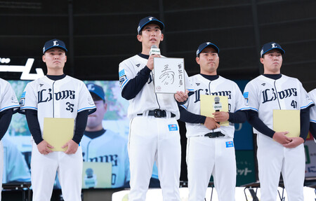 西武は23日、ベルーナドームで開催したファン感謝イベントで新人13選手(育成7人を含む)の入団発表を行い、ドラフト1位の小島大河捕手(明大、背番号10)は「目標は首位打者。持ち味の打撃を見てほしい」と決意を語った。