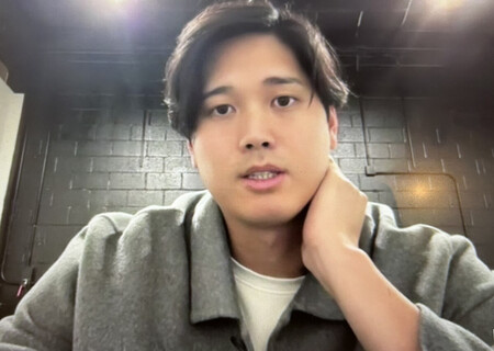 〔写真説明〕オンラインで取材に応じるドジャースの大谷=25日、ロサンゼルス