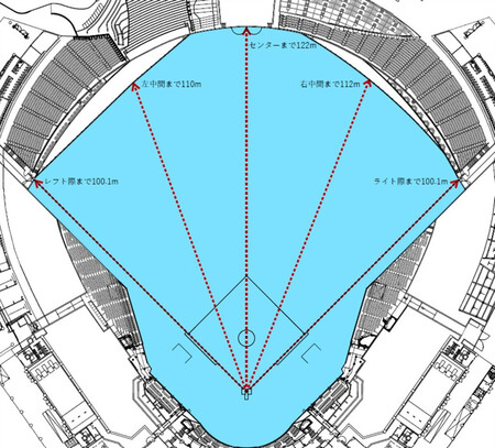 楽天は26日、来季に向けて本拠地楽天モバイルパーク宮城の外野の本塁寄りにフェンスを新設すると発表した。本塁から116メートルあった左中間、右中間までの距離はそれぞれ最大110メートルと112メートルに縮小される。フェンスの高さは2メートル(一部1.8メートル)。中堅と両翼ポール際までの距離は変わらない。