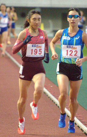 陸上のエディオン・ディスタンスチャレンジin大阪は6日、大阪市のヤンマースタジアム長居でタイムレース方式で行われ、女子1万メートルで田中希実(ニューバランス)が自己新記録の30分54秒40で日本選手トップの3位に入った。 樺沢和佳奈(三井住友海上)が4位で、日本歴代3位の記録を持つ不破聖衣来(同)は22位だった。【時事通信社】 〔写真説明〕女子1万メートルで日本選手トップの3位に入った田中希実(左)=6日、大阪・ヤンマースタジアム長居