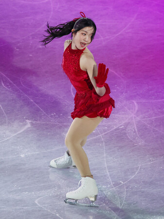 〔写真説明〕エキシビションで演技する女子の中井亜美=7日、愛知・IGアリーナ