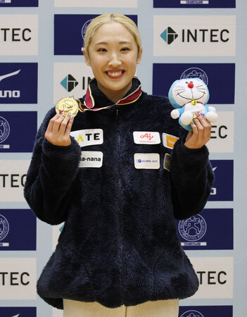 トランポリンのジャパンオープンは7日、川崎市の東急ドレッセとどろきアリーナで決勝が行われ、女子はパリ五輪代表で今年の世界選手権銀メダルの森ひかる(GATE)が56.48点で連覇した。男子は世界選手権銅の宮野隼人(滋賀県スポーツ協会)が61.86点で優勝した。【時事通信社】 〔写真説明〕女子で優勝した森ひかる=7日、神奈川・東急ドレッセとどろきアリーナ