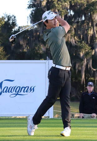 〔写真説明〕最終ラウンドでプレーする石川遼=14日、米フロリダ州ポンテベドラビーチ