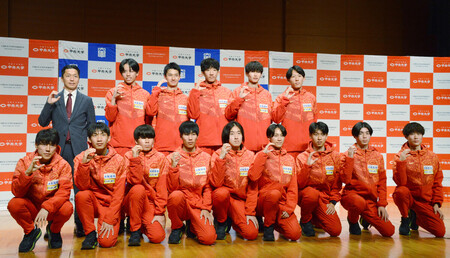 〔写真説明〕箱根駅伝に向けた記者会見後、撮影に応じる中大の選手ら=18日、東京都八王子市