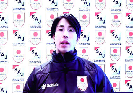 〔写真説明〕オンラインで取材に応じるフリースタイルスキー・モーグル男子日本代表の堀島行真=26日