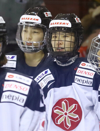 〔写真説明〕アイスホッケー女子日本代表の床(現姓・人里)亜矢可(右)と床秦留可=2018年1月30日、東京・ダイドードリンコアイスアリーナ
