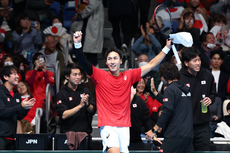 男子テニスの国別対抗戦、デビス杯(デ杯)ファイナル予選1回戦の日本―オーストリアは6日、東京・有明コロシアムで開幕してシングルスが行われ、日本は第1試合で綿貫陽介(SBCメディカルグループ)が勝ち、第2試合で望月慎太郎(木下グループ)が敗れて1勝1敗となった。