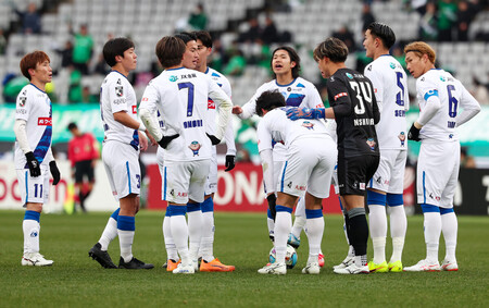 明治安田J1百年構想リーグは8日、各地で地域リーグ開幕節の残り4試合が行われ、東で昇格組の水戸は東京Vに1―3で敗れた。川崎は柏との打ち合いを5―3で制した。 西ではともに新監督を迎えたチームの対戦で名古屋が清水を1―0で下した。福岡は岡山にPK戦で勝った。【時事通信社】 〔写真説明〕前半、先制点を奪われ、集まる水戸イレブン=8日、味スタ