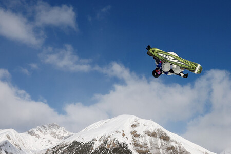 〔写真説明〕スノーボード男子スロープスタイル予選に臨む長谷川帝勝=15日、リビーニョ(ロイター時事)