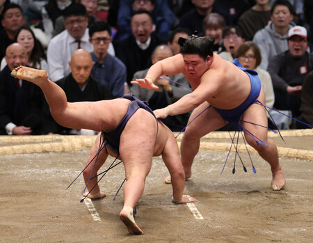 「横綱相手に思い通りの相撲は取れない。体が動いてくれた」。低く、鋭い当たりで中に入って相手を起こす。豊昇龍を防戦一方にして、タイミング良くはたいた。「自信になる。うれしい」と表情を緩めた。