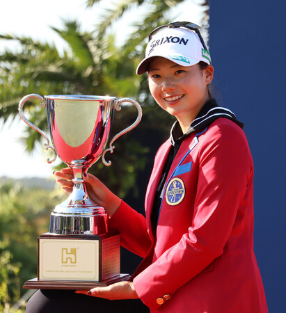 〔写真説明〕台湾ホンハイ・レディースで優勝した菅楓華=15日、台湾・桃園