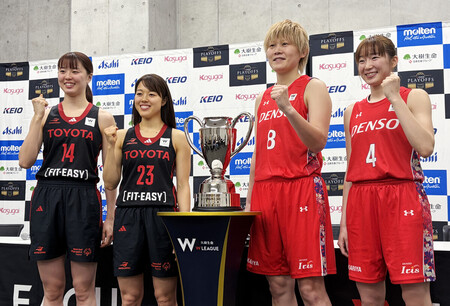 バスケットボール女子Wリーグのプレーオフ決勝(3戦先勝方式)は、4日から京王アリーナ東京で始まり、トヨタ自動車とデンソーが対戦する。3日は両チームの主力選手が、試合会場で記者会見に臨んだ。