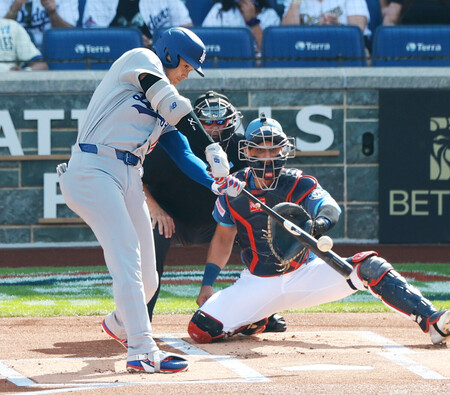 ドジャースの大谷は二回1死二塁で内角速球を右前にはじき返し、好機を拡大。この回3点を奪う攻撃につなげた。五回にも鋭い右前打を放って2試合連続複数安打。昨年8月24日から継続している連続出塁を39試合に伸ばした。