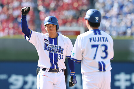 1死から牧とヒュンメルの連打で好機に。2死となったが、4番佐野がつなぐ。1ストライクから2球目の変化球を捉え、左翼線へ逆転の2点二塁打。「コンパクトに打ち返すことができてよかった」と納得できる打撃だった。