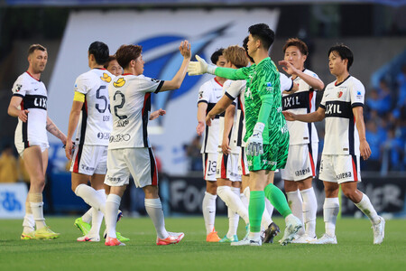 明治安田J1百年構想リーグは12日、各地で第10節の残り2試合が行われ、東で首位の鹿島は川崎に2―0で快勝し、勝ち点を26に伸ばした。 東京Vは浦和をPK戦の末に下して、勝ち点15とした。浦和は5連敗。【時事通信社】 〔写真説明〕川崎に勝利した鹿島イレブン=12日、U等々力 〔写真説明〕後半、PKで先制点を決め、喜ぶ鹿島の鈴木(左から2人目)=12日、U等々力