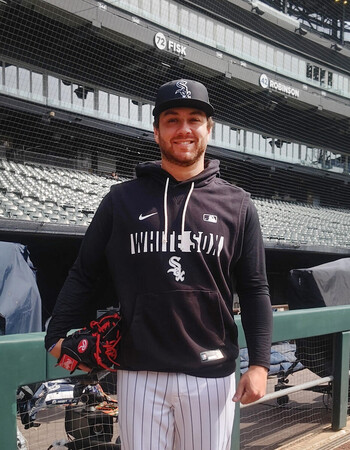 〔写真説明〕撮影に応じるホワイトソックスのケイ=8日、シカゴ