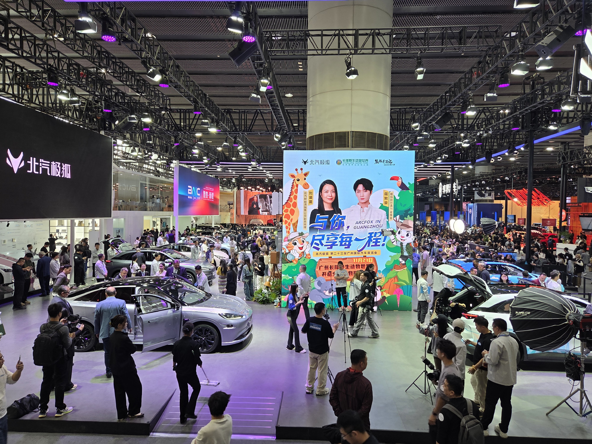 中国南部の広東省広州市で21日、広州国際モーターショーが開幕した。主催者によると、中国で人気が高い電気自動車(EV)を中心に計1000台以上が陳列。会期は30日まで。