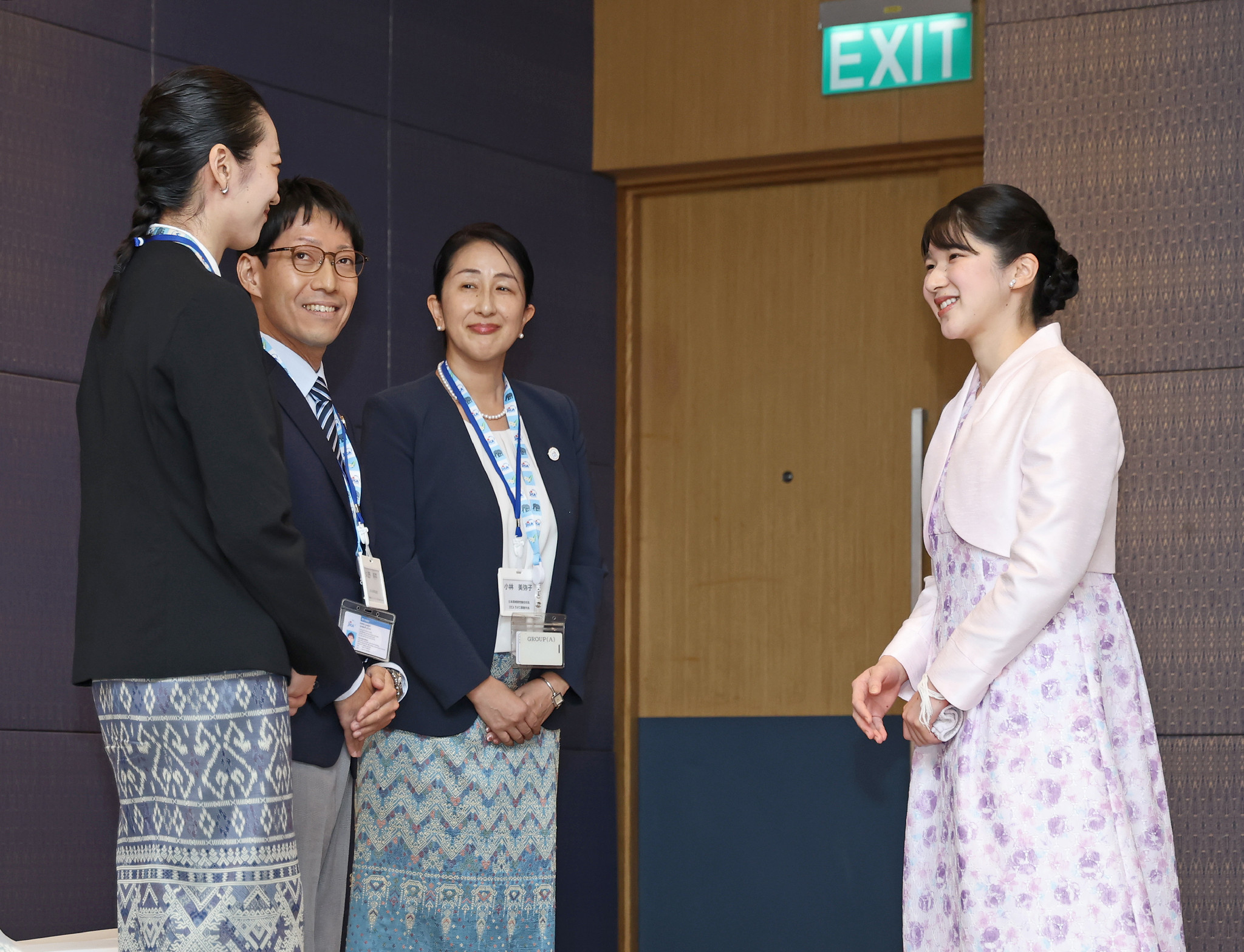 ラオスの在留邦人らと面会される天皇、皇后両陛下の長女愛子さま=21日、ビエンチャン(代表撮影)