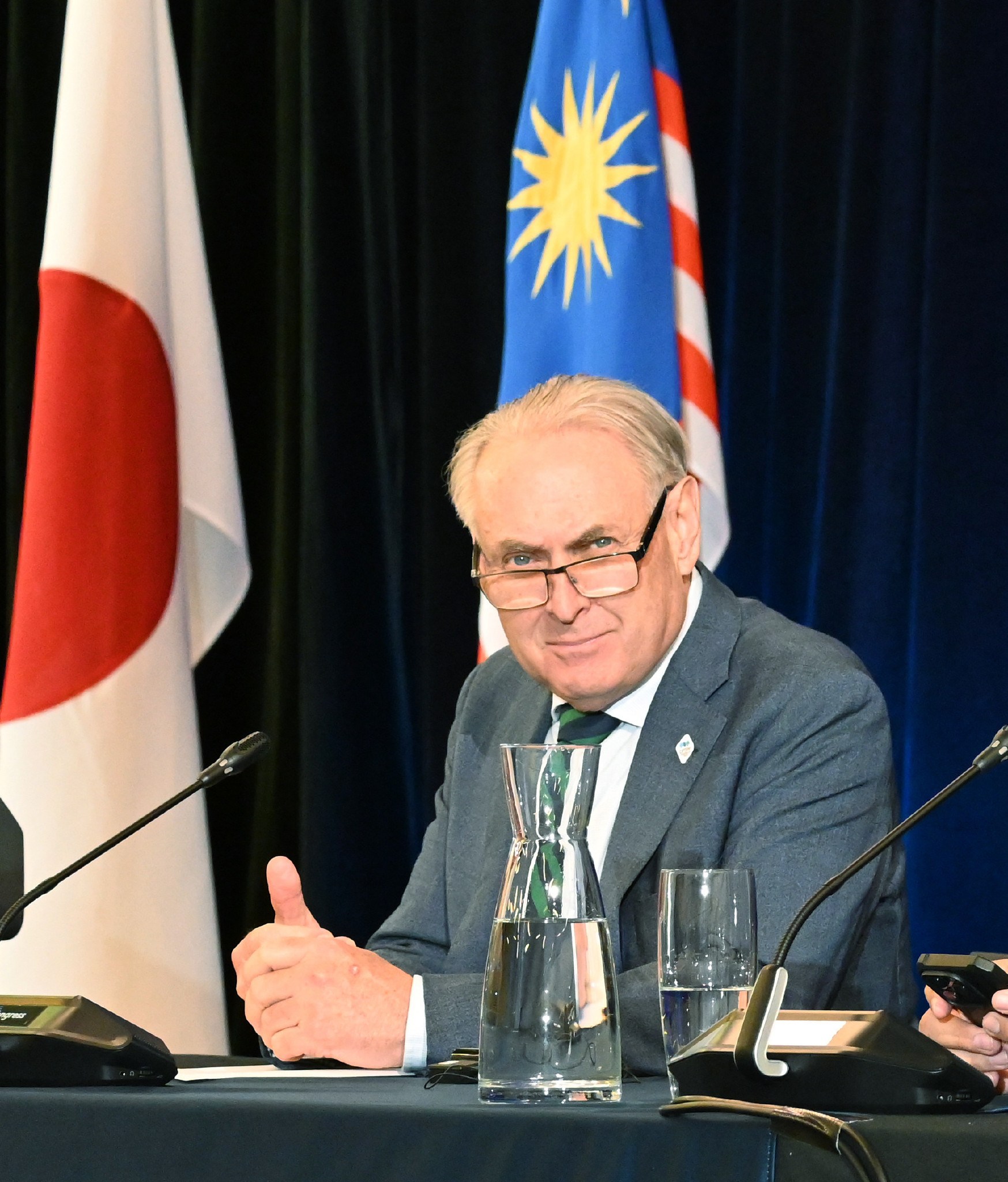 記者会見に臨むオーストラリアのファレル貿易相=21日、メルボルン