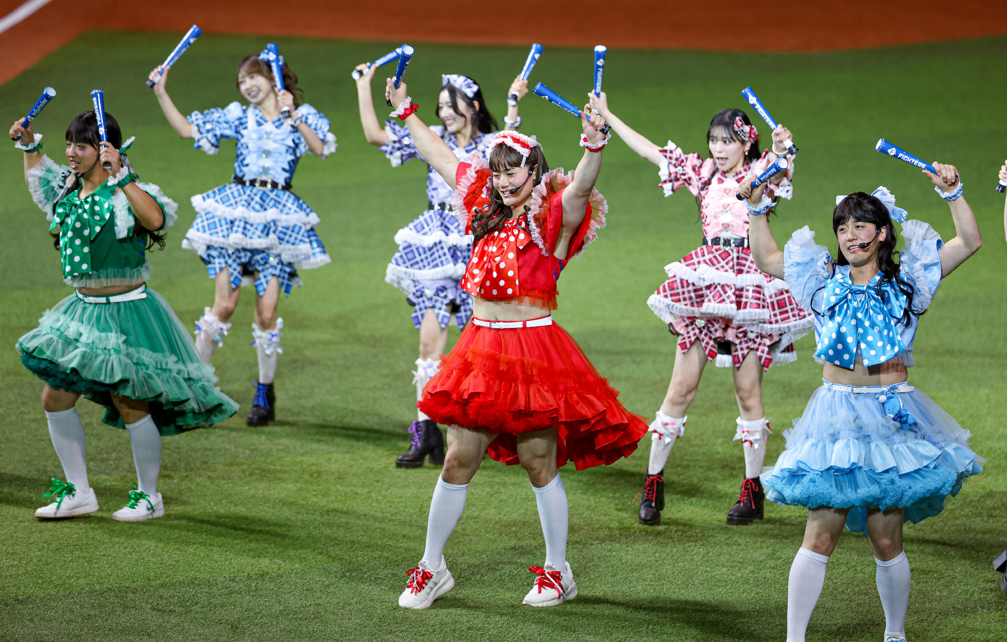22日、プロ野球・日本ハムのファン感謝イベントが開催。清宮幸(中央)らとエスコンときめき大使によるパフォーマンスが行われるなど、観客は普段見られない選手の姿や交流を楽しんでいた。