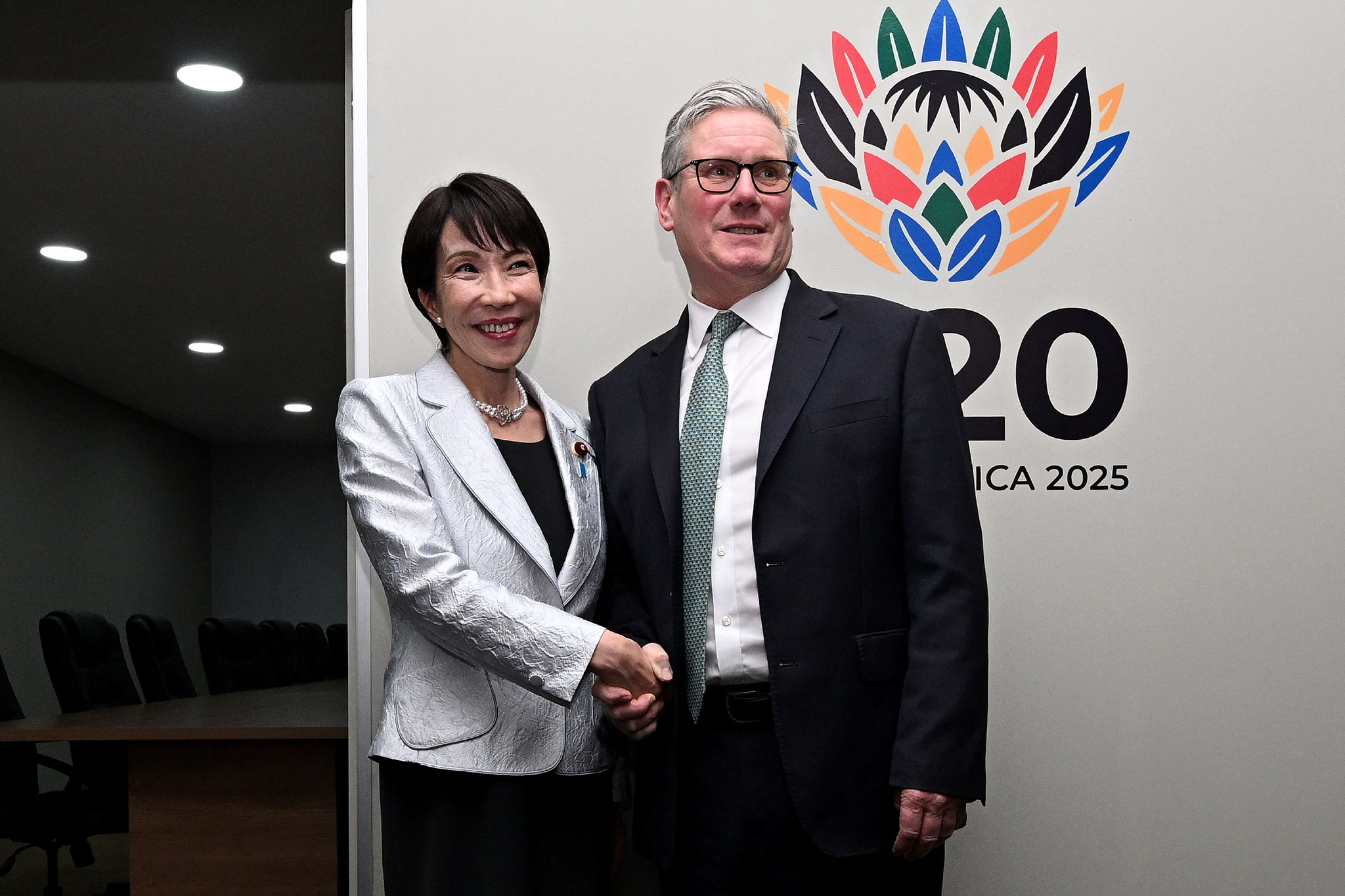高市早苗首相は22日(日本時間同)、訪問先の南アフリカでスターマー英首相と会談し、「自由で開かれたインド太平洋」の実現や、法の支配に基づく国際秩序の維持・強化に向けた協力を呼び掛けた=ヨハネスブルク【AFP時事】